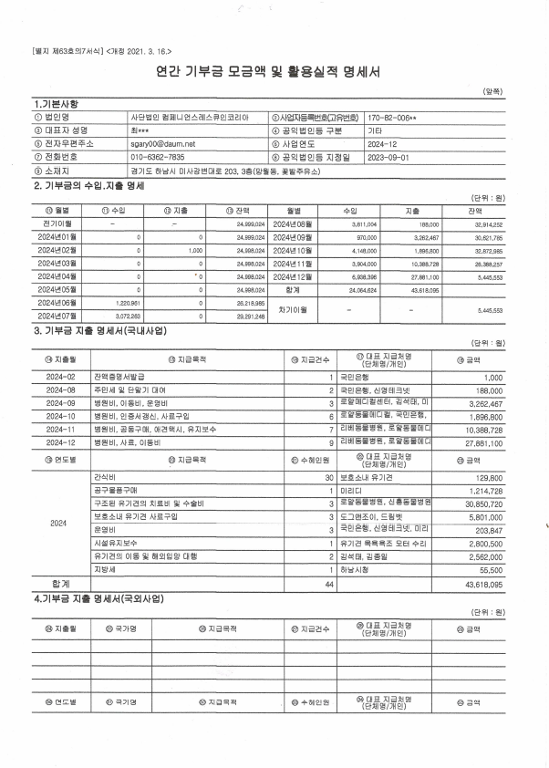 ¿¬°£ ±âºÎ±Ý ¸ð±Ý¾× ¹× Ȱ¿ë½ÇÀû ¸í¼¼¼